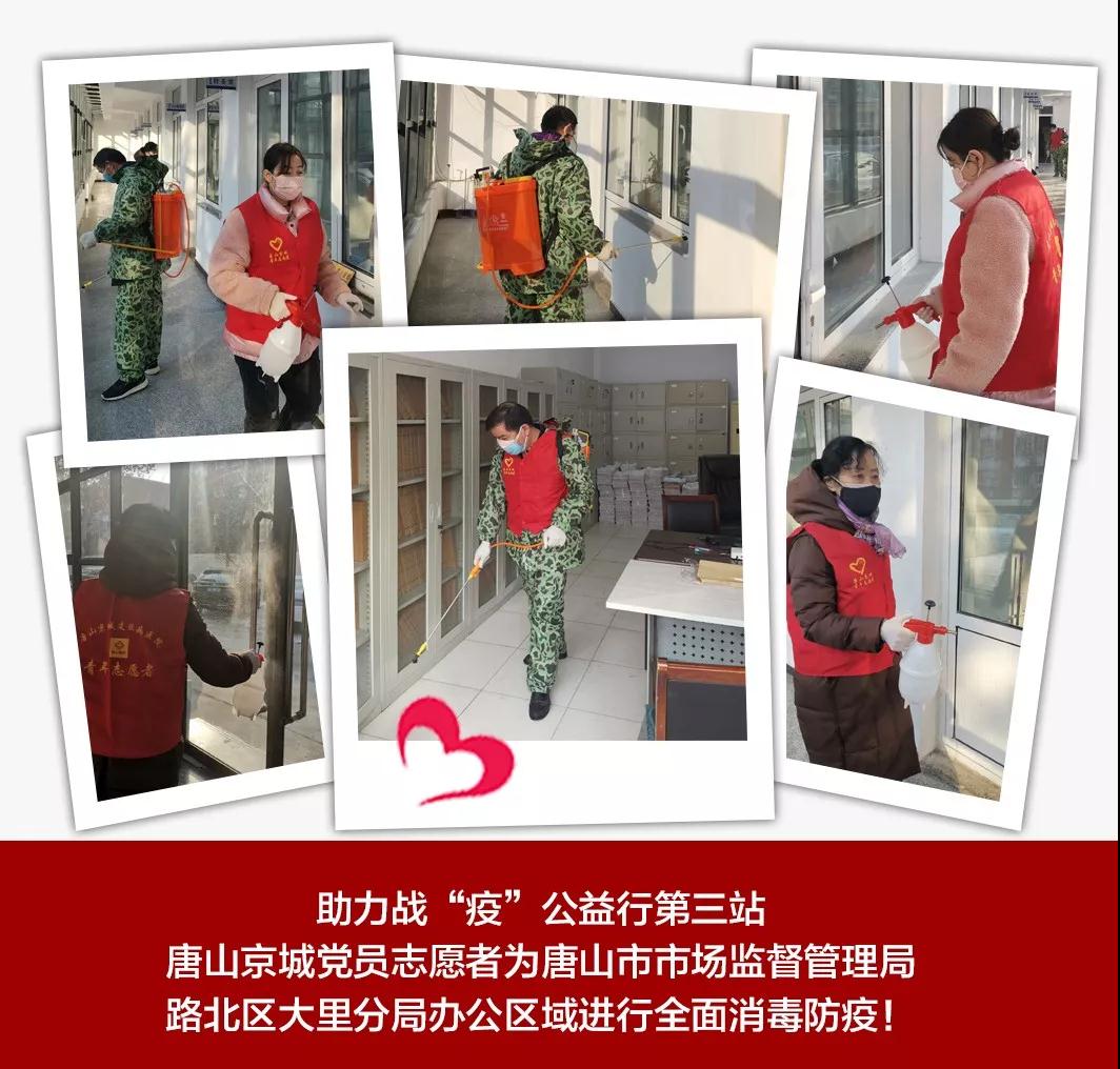 2月19日下午3點30分,唐山京城皮膚醫(yī)院黨支部龔蘭珍書記帶領(lǐng)黨員志愿者,來到唐山市城市管理綜合執(zhí)法大里中隊,為他們的辦公室、樓道、門把手等辦公及公共區(qū)域進行全面徹底的噴殺消毒,看著志愿者們一絲不茍消毒的樣子,城管中隊的警官們紛紛伸出大拇指點贊!
