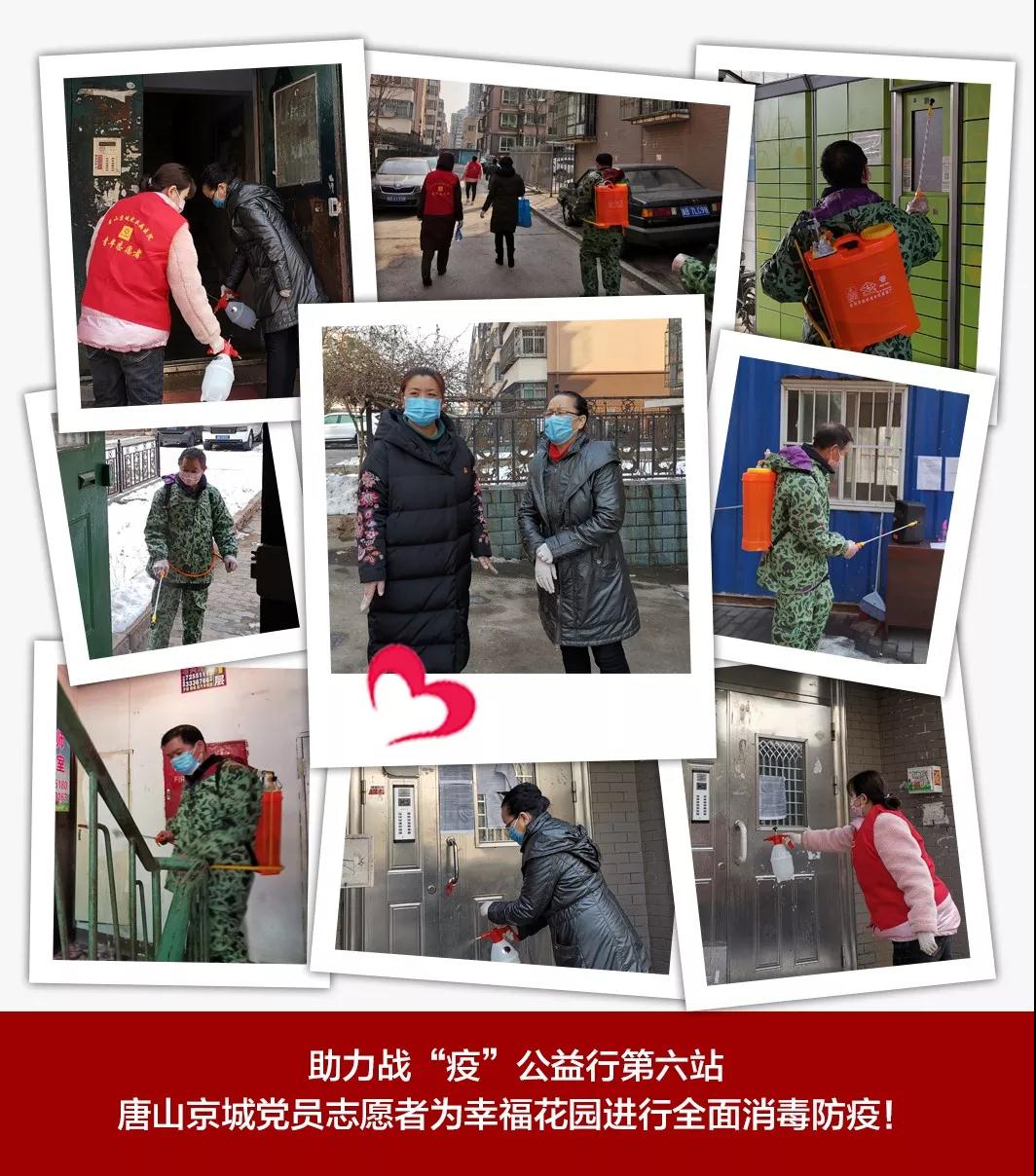 2月19日下午2點,唐山京城皮膚醫(yī)院黨支部龔蘭珍書記帶領(lǐng)黨員志愿者,來到唐山市路北區(qū)幸?;▓@小區(qū),社區(qū)鄭書記一邊介紹目前遇到最大的難題就是居民樓道消毒噴殺問題,一邊感謝京城黨支部非常時期的鼎力支持,你們真是我們社區(qū)的及時雨!志愿者們在龔書記的領(lǐng)導下,背著沉重的的消毒液,從一樓跑到6樓,老黨員劉煥柱衣服都已濕透,志愿者陳子芳的汗水模糊了雙眼,但是他們依然咬著牙,穿梭在每一個樓口、每一棟樓、檢查站、快遞柜……社區(qū)小楊感動的說:我代表社區(qū)謝謝你們,你們是最美的志愿者!